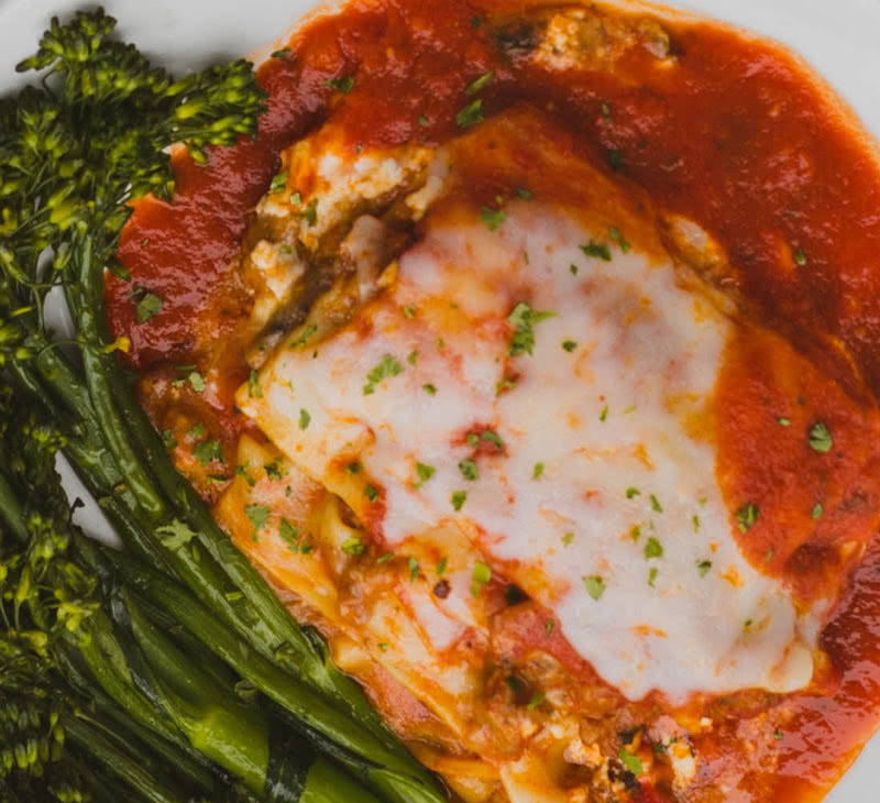 Our plant-based specialty dish enfolds juicy eggplant in our special cheesey marinara.