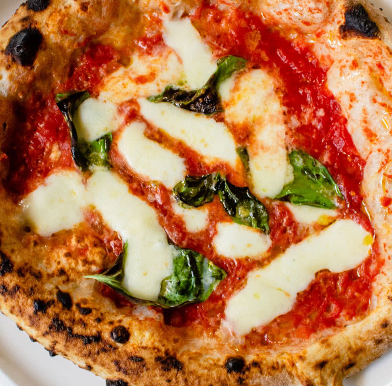 Our regal pizza is topped with San Marzano tomatoes, fior di latte, fresh basil, salt and extra-virgin olive oil.